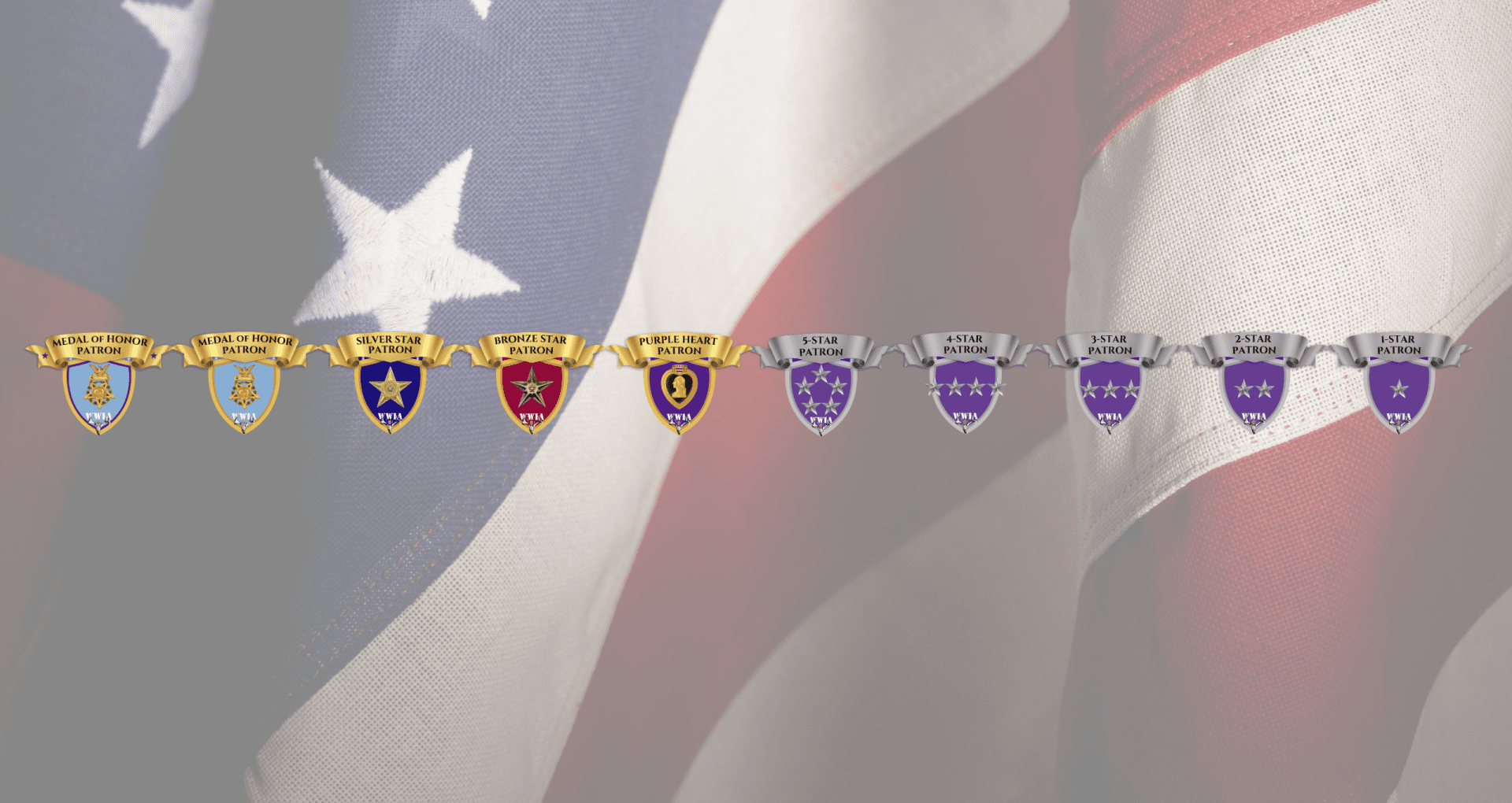 Decorated Patrons Medal of Honor Patrons (2x) WWIA Southern Vermont Chapter Medal of Honor Patrons WWIA Southern Vermont Chapter Estate of James Carl Bertheaume Silver Star Patrons Bronze Star Patrons Purple Heart Patrons 5-Star Patrons 4-Star Patrons 3-Star Patrons 2-Star Patrons 1-Star Patrons Scott Barrington Scott Paternoster Robert Beardslee Kyle Bennett Rick Sawyer Nelson Holt Mark and Lisa Rickmeyer Eric Olson Scott and Misty Jensen Tim & Kim Underwood Jim & Susan Parrington Ahren Staubitz