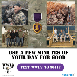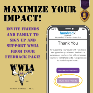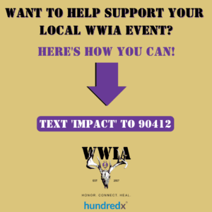 Share. Share. Share! Whether it’s over the course of a conversation, through text, social media, email, etc., you can make a real difference by telling others about this awesome fundraiser! Share the mission of WWIA and how we are committed to bringing Honor, Connection, and Healing to our combat-wounded Purple Heart Heroes. You can share with others by: